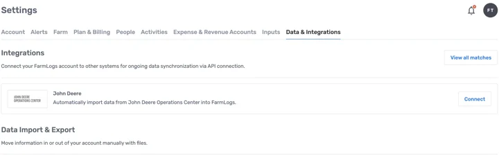 Growers can now connect their FarmLogs account to their John Deere Operations Center account to automatically create Activities and import yield maps. This new capability will allow growers to seamlessly transfer the field work being captured by their equipment monitor to their FarmLogs account. By doing so, growers can: