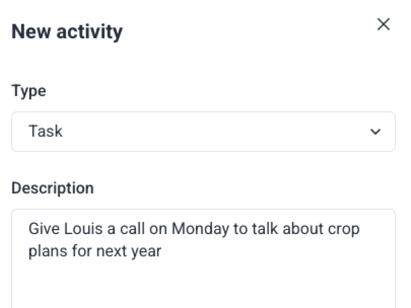 Note specific activity types and create a follow-up task with a due date to ensure actionable next steps are communicated across your team.