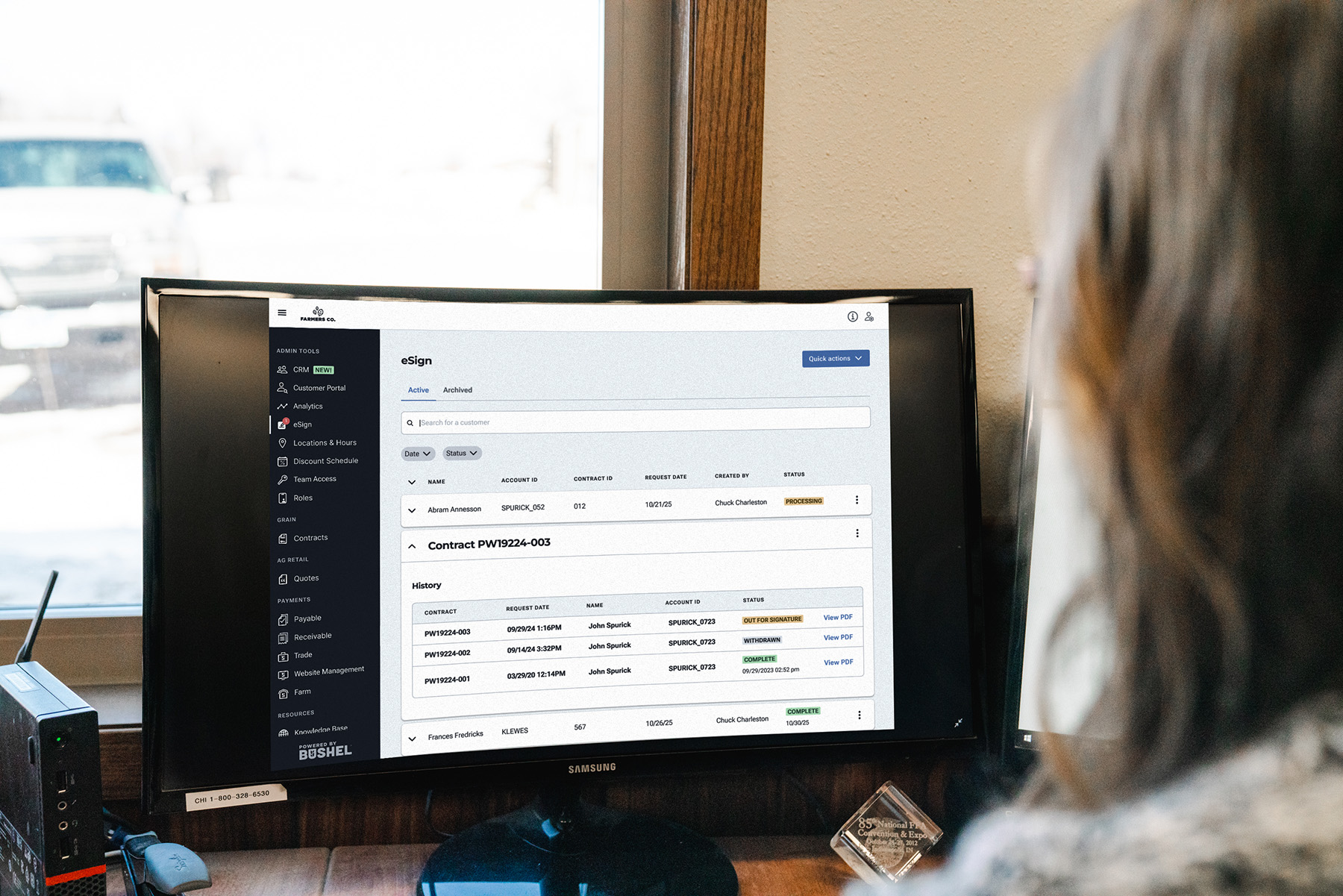 Manual contract tracking creates significant business risks. Bushel eSign provides secure, time-stamped digital signatures that sync directly with your ERP.