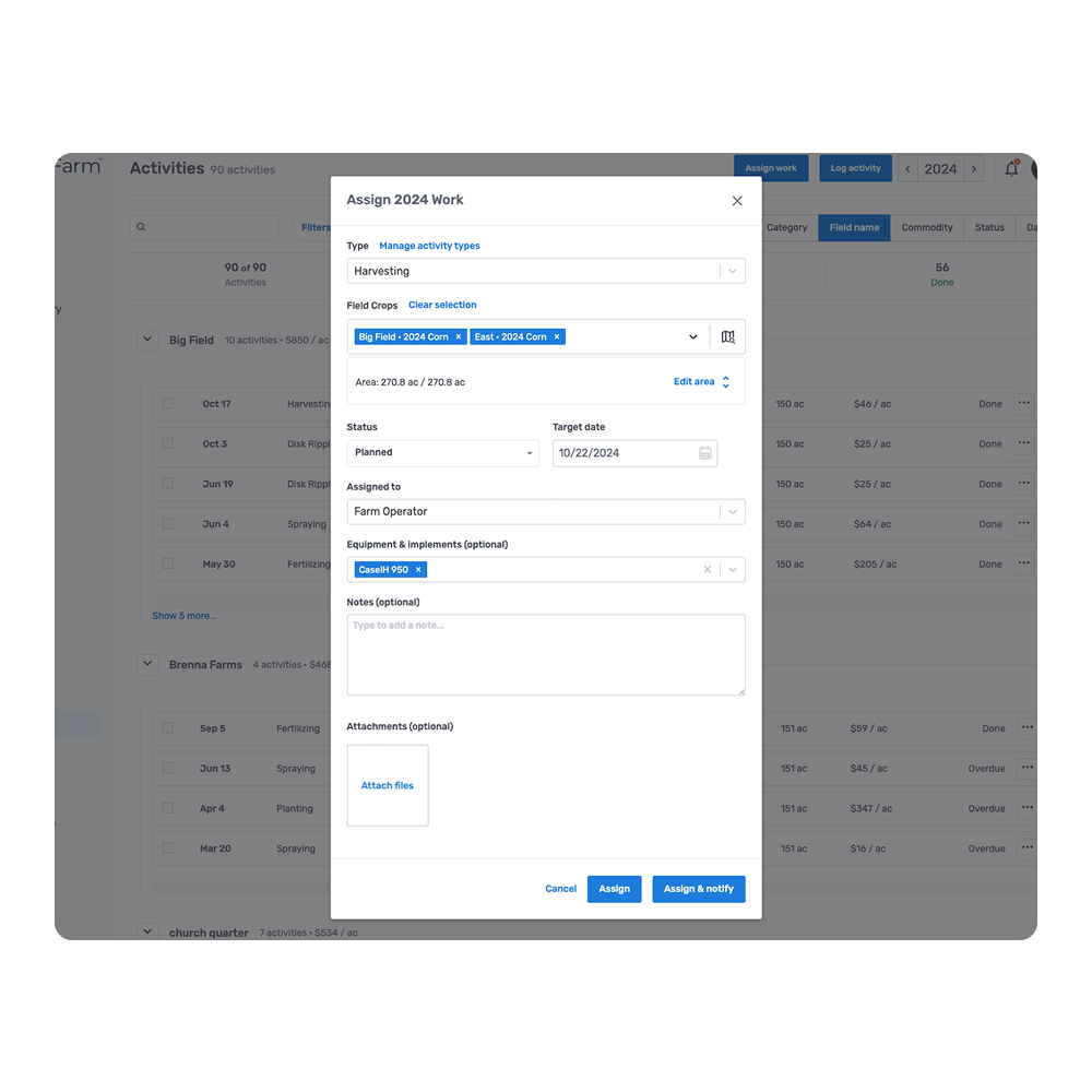 Streamline the logistics of running a farm at scale by assigning work orders to your team.