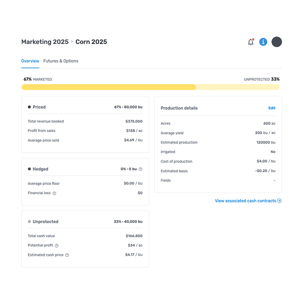 Aggregate data from your Bushel Farm account to get a complete picture of your farm’s profit and loss down to the field level.