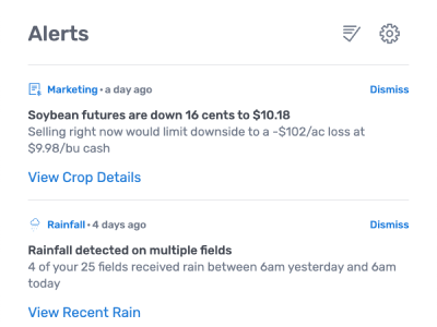 Easily plan your day with rainfall notifications for each field. Compare current data with past seasons to make better decisions and keep your operation running smoothly.