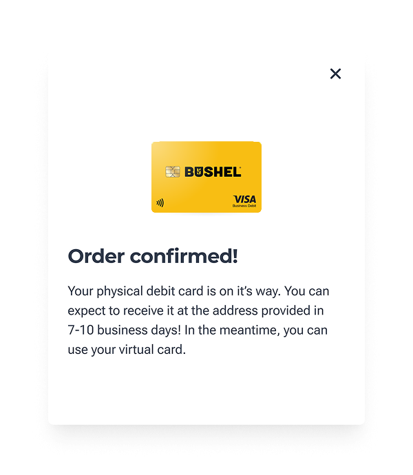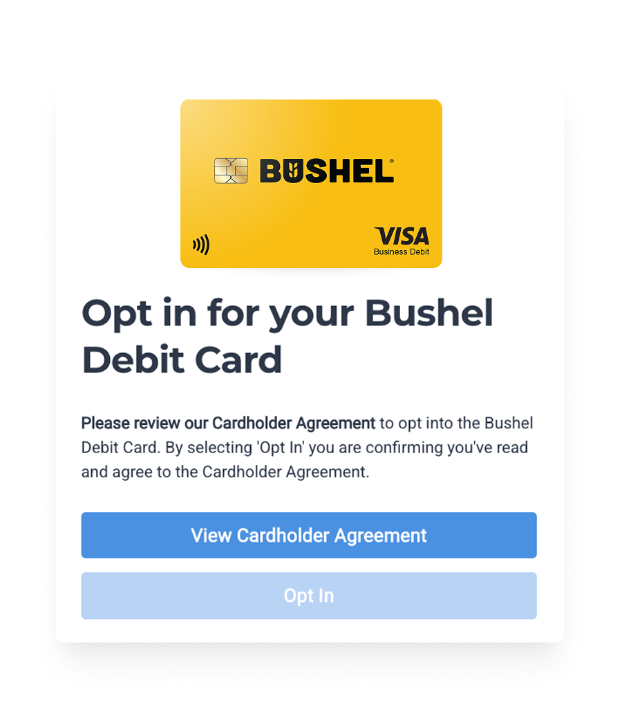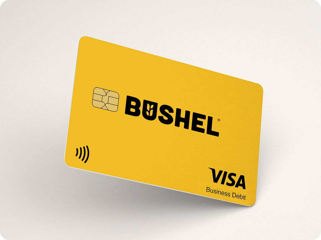 Access funds in your Bushel Business Account* with more convenience than ever. A Bushel Gold Visa Debit Card is now available to spend your balance instantly.1