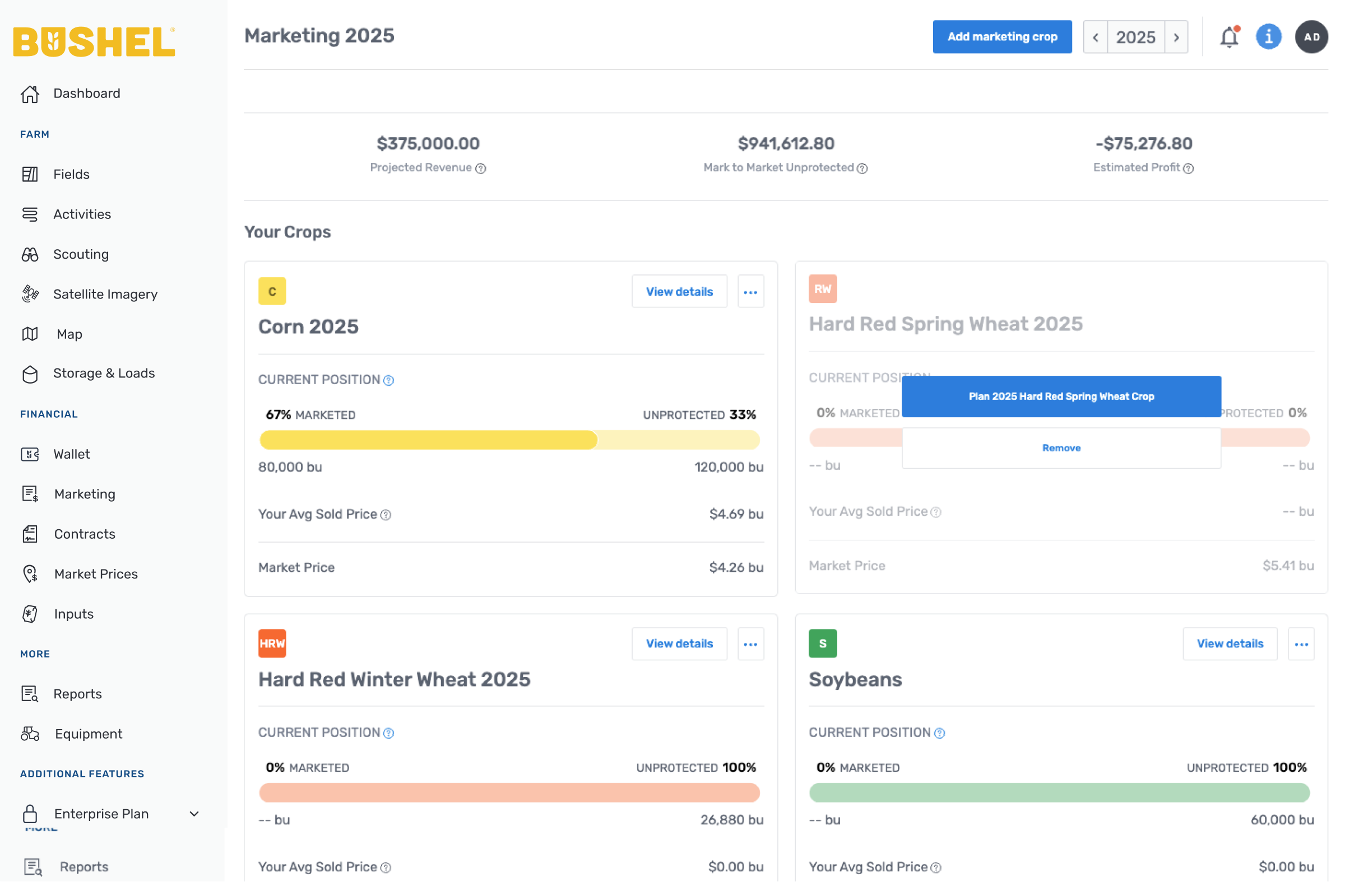 Know the value of your unsold bushels as prices move, and easily keep track of your overall position with acre profit in mind. Easily calculate cost of production / breakeven for your farm to monitor profitability and position.