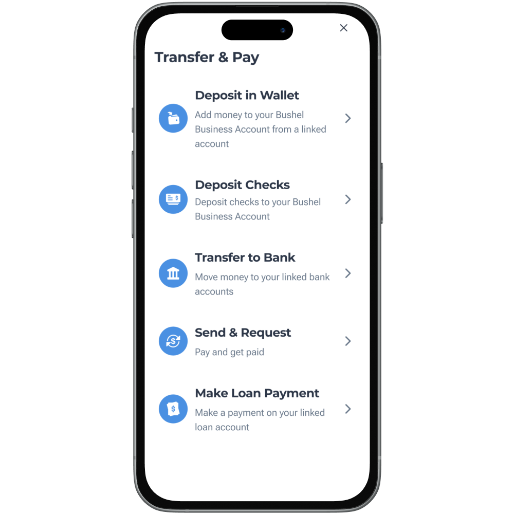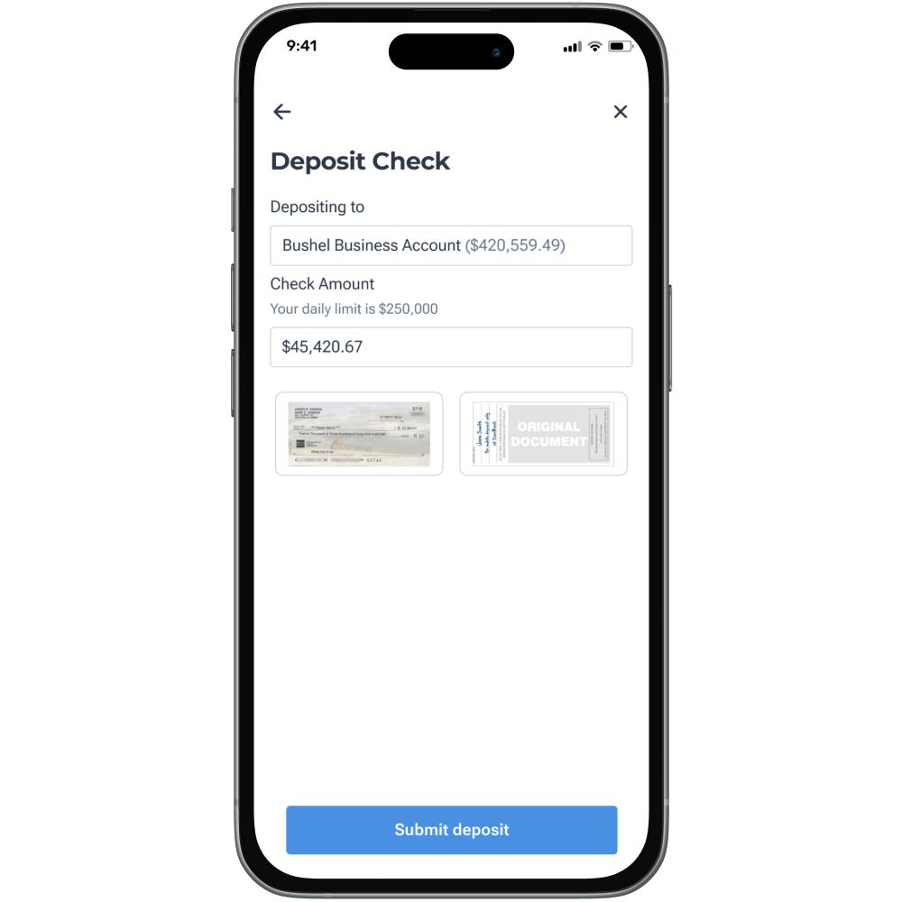 Deposit checks in your Bushel Farm app anytime, from anywhere.